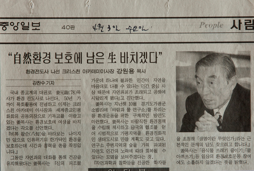 환경전도사 나선 강원용 목사 작성일 : 2011.06.29 조회수 : 21 공유하기 페이스북으로 공유하기 페이스북으로 공유하기 URL 팔순을 바라보는 나이지만 앞으로 인류위기의 한가닥 희망인 환경을 보호하는 데 시간과 정력을 쏟을 작정입니다. 바람직한 환경정책을 수립해 제시하고 당국의 협조를 얻어 시범적으로 가평지역을 환경친화적인 생태도시로 만들 계획도 갖고 있다. 관련일시 1996.04.03 노트 중앙일보 태그 신문기사 이전 한신대 신입생을 위한 내일&리더십 캠프 다음 1차 멘토 포럼 목록으로
