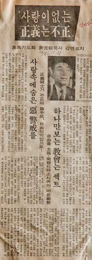 기장기도회 강연요지 : 사랑이 없는 정의는 부정 작성일 : 2011.06.29 조회수 : 14 공유하기 페이스북으로 공유하기 페이스북으로 공유하기 URL 정의로 나타나지 않는 사랑은 하나의 낭만주의나 감상주의요ㅡ 사항을 동반하지 않는 정의는 쉽게 부정이 된다. 교회는 사랑과 정의, 종말과 현실, 저세상과 이세상, 그 어느 한쪽에 서는 때 이미 교회가 아니라 분파가 되어버리고 만다. 이 섹트화를 경계하고 양극화를 해소시키고 함께 사는 평화의 실현에 주력해야 한다. 관련일시 1974.11.21 노트 신아일보 태그 신문기사 이전 한신대 신입생을 위한 내일&리더십 캠프 다음 1차 멘토 포럼 목록으로