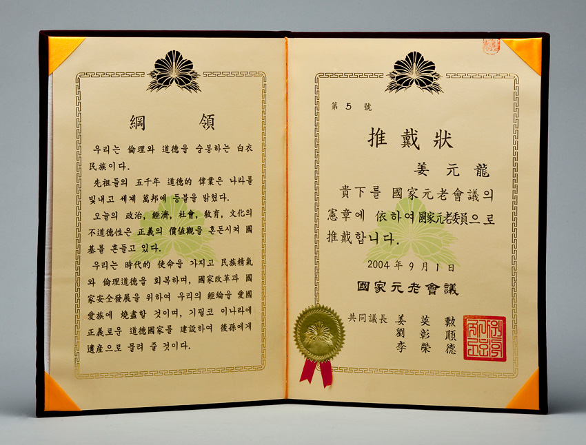 국가원로회의 국가원로위원 추대장 작성일 : 2011.06.29 조회수 : 14 공유하기 페이스북으로 공유하기 페이스북으로 공유하기 URL 귀하를 국가원로회의의 헌장에 의하여 국가 원로 위원으로 추대합니다. 관련일시 2004.09.01 태그 각종상패 이전 한신대 신입생을 위한 내일&리더십 캠프 다음 1차 멘토 포럼 목록으로