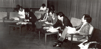 1975년 4월 25일 - 26일, 아카데미 하우스 참가자들이 이야기꽃을 피우고 있는 모습