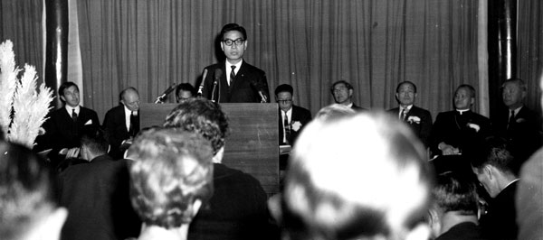 1966년 11월 15일, 아카데미 하우스 아카데미 하우스 준공식에서 식사(式辭)를 하고 있는 강원용...