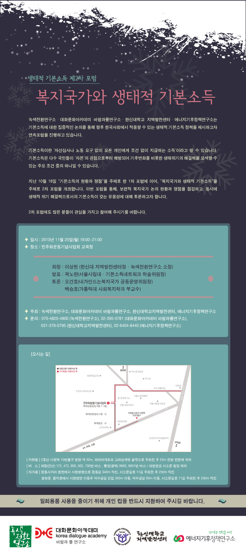 대화문화아카데미 생태적기본소득 제2차포럼에 초대합니다. 2013.11.21 조회수 : 28 공유하기 페이스북으로 공유하기 페이스북으로 공유하기 URL 태그 기본소득생태 이전 ★ 국제 공통어 에스페란토에 얽힌 희망과 고난의 역사 - <위험한 언어>(울리히 린스)의 다음 [세미나] 가따리, 네그리, 들뢰즈, 마르크스, 영어, 페데리치 세미나에 초대합니다. 목록으로